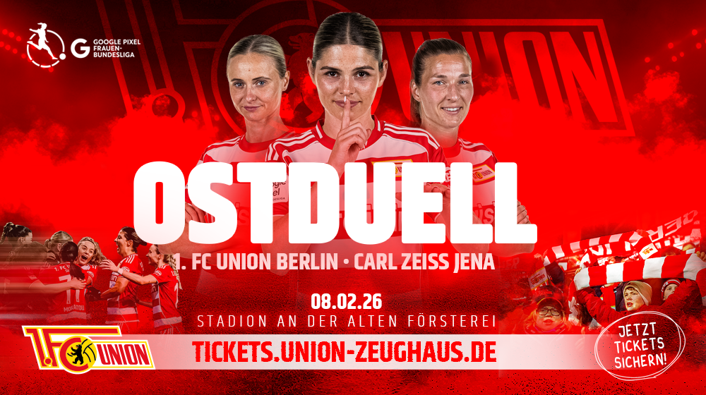 | | SPIELTAGE - Wissenswertes | | Drittes Saison-Duell mit Jena Zweimal standen sich unsere Frauen und der FC Carl Zeiss Jena in dieser Saison bereits gegenüber – mit höchst unterschiedlichem Ausgang. Am Sonntag wollen wir die Bilanz wieder auf unsere Seite ziehen. Die Begegnung wird um 16 Uhr im Stadion An der Alten Försterei angepfiffen. Bitte beachten: Stadionöffnung ist um 15 Uhr. | | | | Nächstes Torspektakel gegen die SGE? Wer erinnert sich nicht? Dank großer Moral gewannen unsere Jungs das Hinspiel mit 4:3, wir dürfen also auf eine umkämpfte Partie gespannt sein. Die Eintracht ist verhalten in das neue Kalenderjahr gestartet: Nach sieben Pflichtspielen wartet die SGE weiterhin auf den ersten Sieg. Frischen Wind könnte die Neuverpflichtung von Trainer Albert Riera bringen, der die Frankfurter wieder stabilisieren soll. | | | | Steffen Baumgart vor der Partie gegen Frankfurt | | PROFIS MÄNNER - Neuigkeiten | | Nachwuchstalent bleibt Köpenicker: Union bindet Julien Friedrich